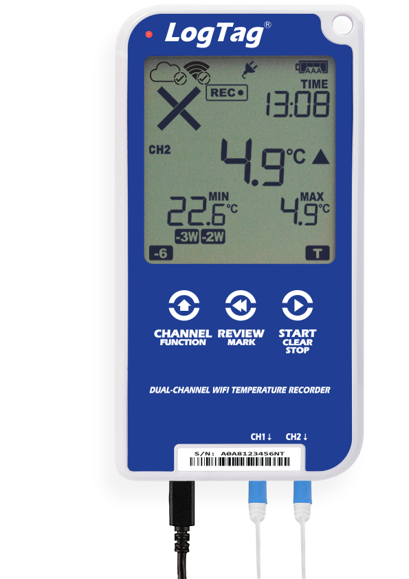 - Download data via LogTag Analyzer data logger software or directly to a PDF report (no software required) in case of a WiFi outage
